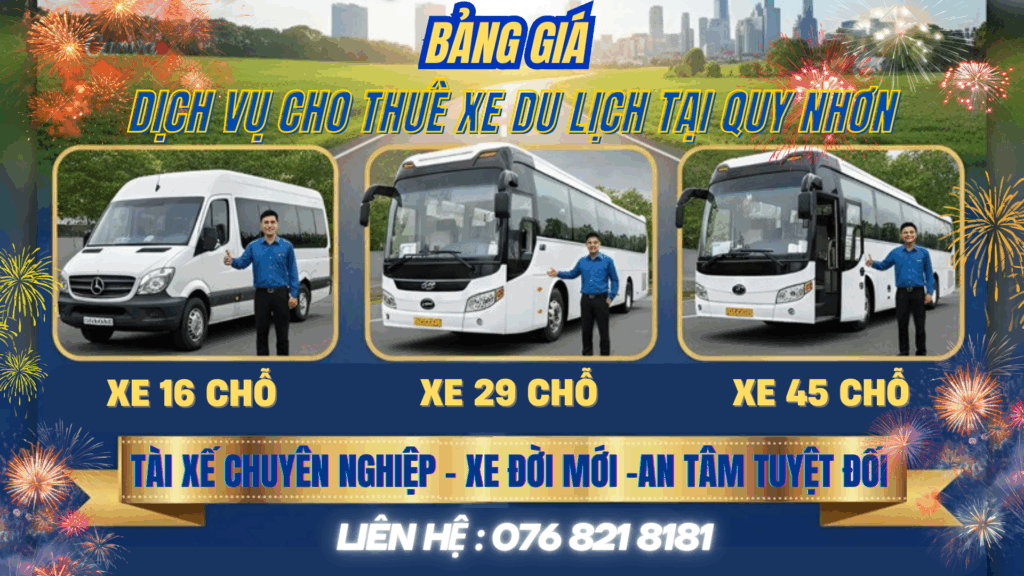 BẢNG GIÁ DỊCH VỤ THUÊ XE DU LỊCH TẠI QUY NHƠN CẬP NHẬT MỚI NHẤT THÁNG 9/2025 (THAM KHẢO)