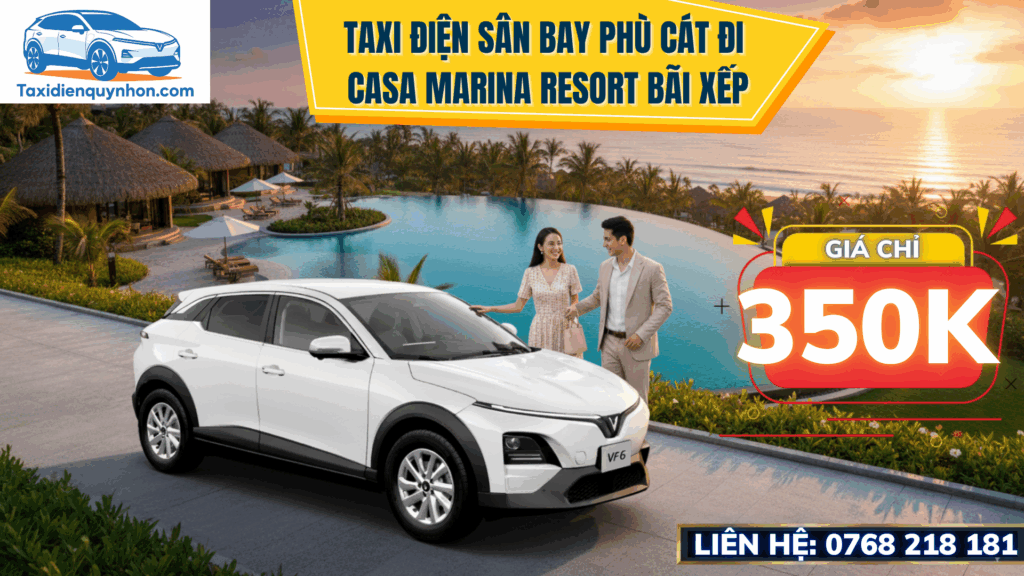Trong những năm gần đây, xu hướng du lịch nghỉ dưỡng tại Quy Nhơn – Bình Định ngày càng phát triển mạnh mẽ, kéo theo nhu cầu di chuyển an toàn, tiện nghi và thân thiện với môi trường. Nắm bắt xu hướng đó, Taxi điện Quy Nhơn đã khẳng định vai trò là đơn vị chuyên nghiệp, phục vụ hành khách di chuyển bằng Taxi điện sân bay Phù Cát đi Casa Marina Resort Bãi Xếp và các khu du lịch, resort và khách sạn cao cấp trên khắp địa bàn.